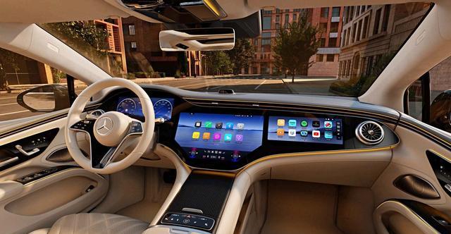 新一代MBUX系统正是建立在此基础之上,并显著扩展了功能性。标配的Hyperscreen将多个显示屏整合在一整块连续玻璃表面之下,并辅以简化后的操作逻辑,可根据情境提供常用功能。人工智能在其中发挥着核心作用。MBUX虚拟助手能够进行复杂对话,并在此过程中调用互联网知识。